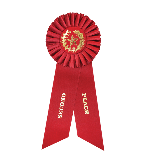9" Rosette features bright gold graphics. Rosette ribbons are perfect for large events, events where rosettes are typically awarded, and for events where the award budget is limited. Rosette has a gold stringfor hanging and a plastic clip on the back.