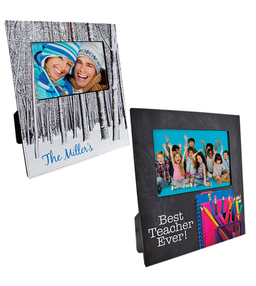 SubliTru Full Color Frame comes in a white Leather-Like material that allows for vibrant images on the frame
