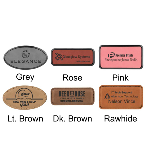 Leatherette Name Tags   Leatherette Composite Material is stain resistant and water resis..