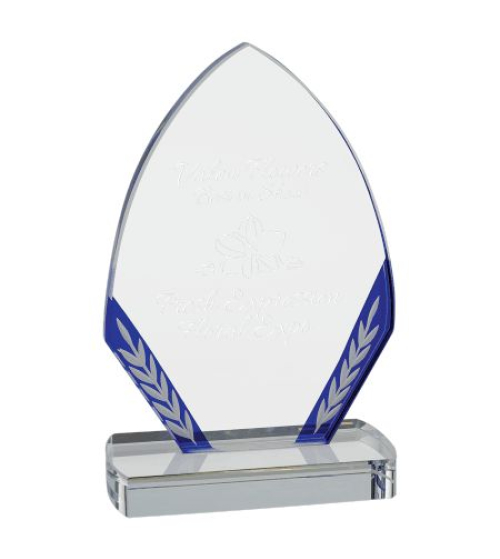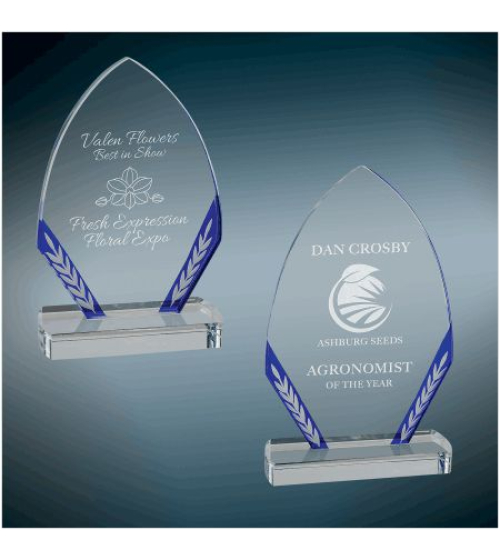 Blue Edge Oval Slant Glass Frost Engrave Glass Size 7.75" or 9.5"..