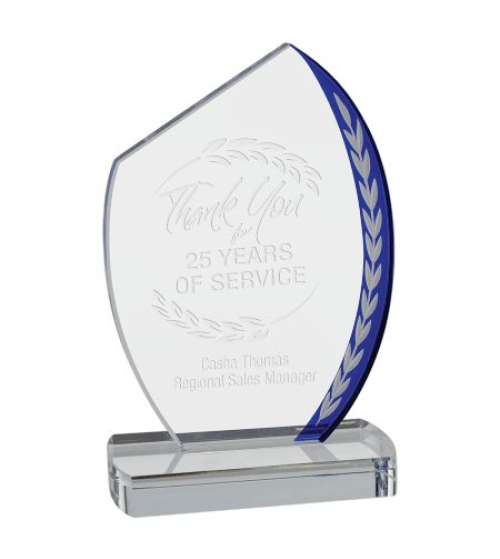 Blue Edge Glass Award Frost Engrave Glass Size 7.75" or 9.5"..