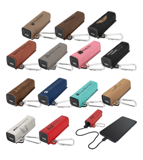 Laserable Leatherette 2200 mAh Power Bank with USB-C Cord
