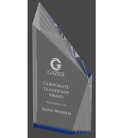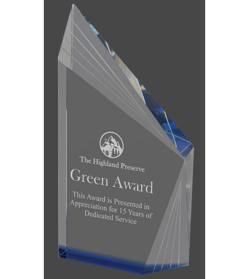 This stunning crystal piece offers tons of visual interest with a solid color bottom that reflects up through the crystal, and peaks, bevels, and lines that provide dimension and still leave plenty of room to personalize it for any event. Available in two sizes, it comes in a lined presentation box for added elegance. Crystal is the ultimate for recognition of achievement and milestones reached.