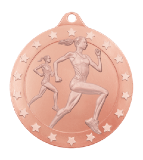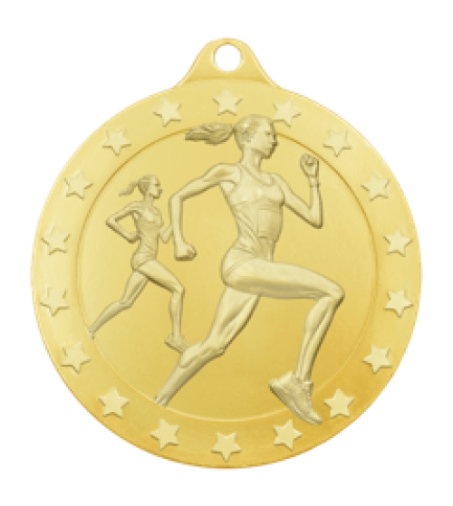 3D Series Medal, Track & Field 2" Size in Gold, Silver or Bronze Choice of Ribbon..