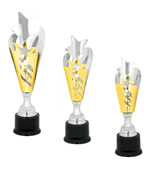Silver or Gold Metal Star on Black Plastic Weighted Base