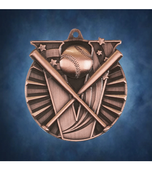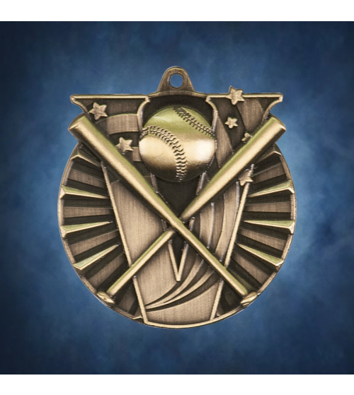 3D Series Medal, Baseball / Softball 2" Size in Gold, Silver or Bronze Choice of Ribbon..