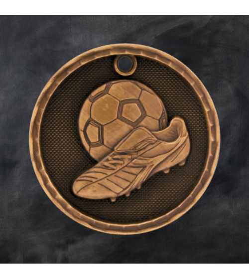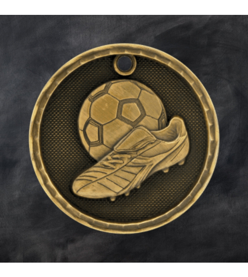3D Series Medal, Football 2" Size in Gold, Silver or Bronze Choice of Ribbon..