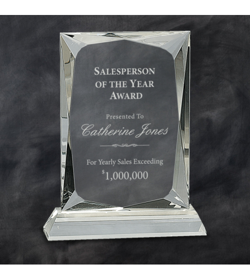 Clear Fusion Glass Award with Genuine Black Marble Base Laser Engraves Frosted Overall Size 4"..